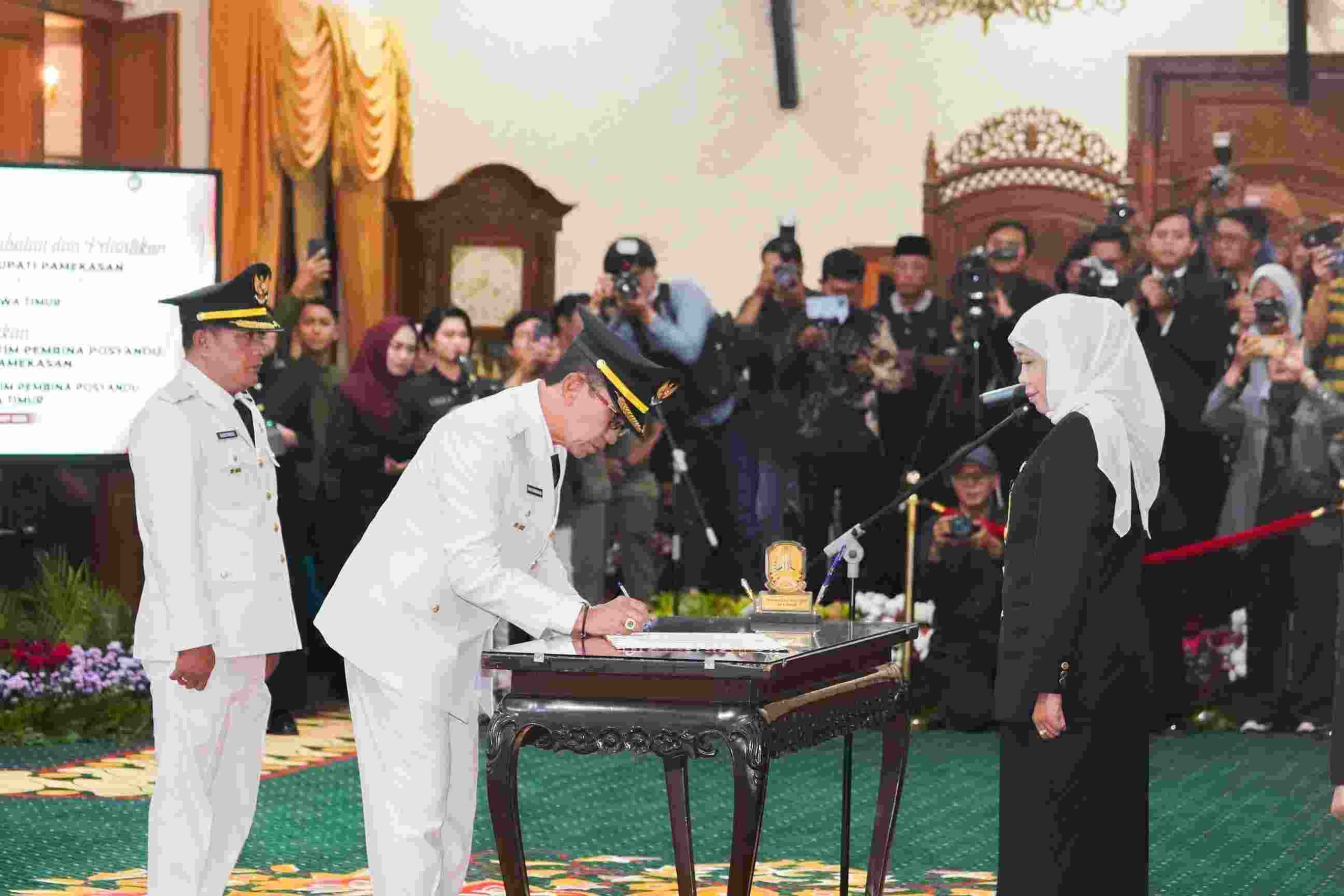 PAMEKASAN,KORAN TIMES– Gubernur Jawa Timur, Khofifah Indar Parawansa secara resmi melantik Bupati dan Wakil Bupati Pamekasan terpilih, Dr. KH. Kholilurrahman – H. Sukriyanto di Gedung Negara Grahadi, Surabaya, Rabu (19/3/2025) malam.