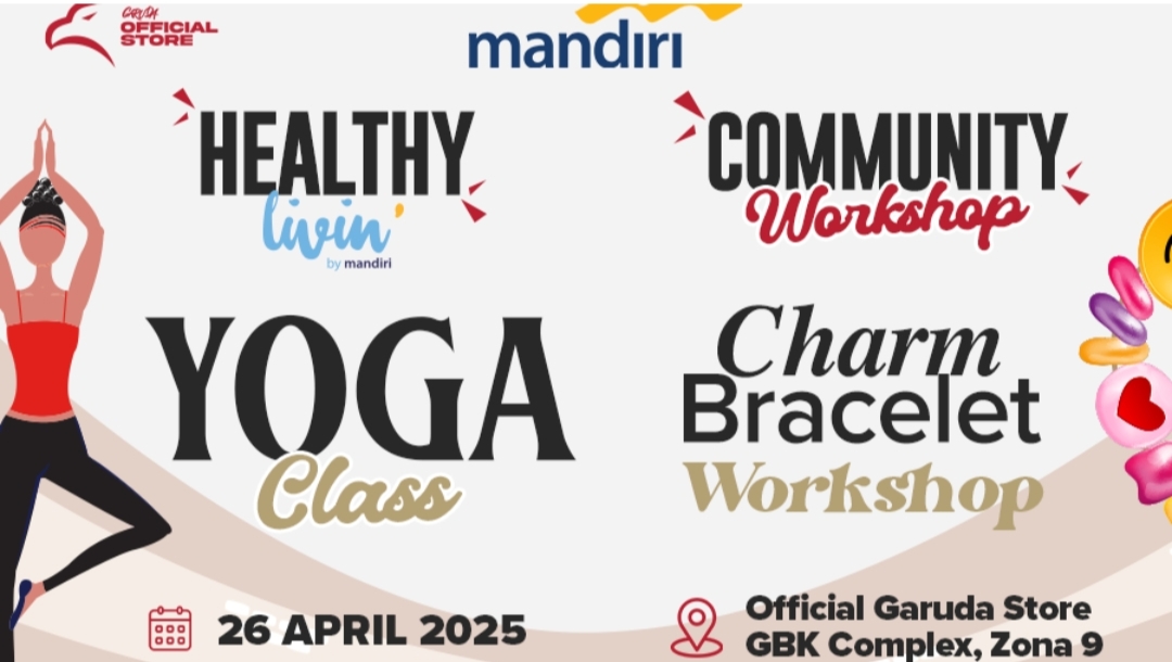Kali ini, Mandiri Healthy Livin akan menghadirkan dua aktivitas utama yang seru dan inspiratif yaitu Yoga Class dan Community Workshop. Dipandu oleh instruktur @delimamyra, Yoga Class akan berlangsung dari pukul 07.00 hingga 09.00 WIB serta diikuti oleh tiga pemain Timnas Putri Indonesia: Shafira Ika, Indira Jenna, dan Prihatini. Setelah itu, acara dilanjutkan dengan Charm Bracelet Workshop yang berkolaborasi dengan kreator lokal @daistudio_ dan berlangsung mulai pukul 09.00 hingga 11.00 WIB.