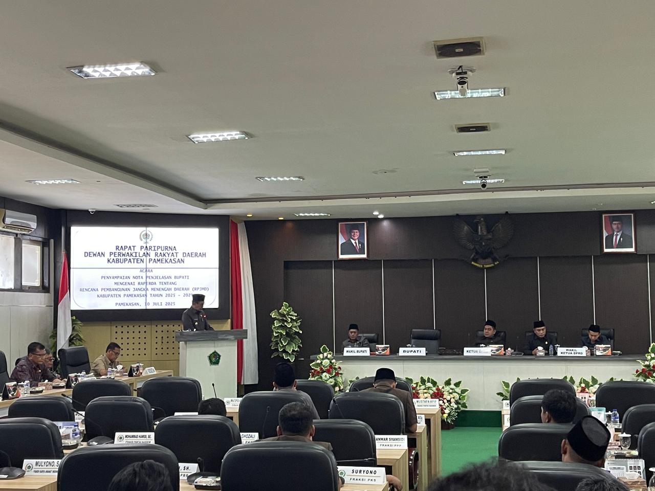 PAMEKASAN,KORAN TIMES– Dewan Perwakilan Rakyat Daerah (DPRD) Kabupaten Pamekasan, Madura, Jawa Timur, menggelar rapat paripurna penyampaian nota penjelasan Bupati mengenai Raperda tentang Rencana Pembangunan Jangka Menengah Daerah (RPJMD) tahun 2025-2029. Kamis (10/7/2025).